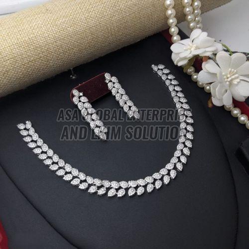 Ladies Stylish Silver Brass Stone Necklace Set