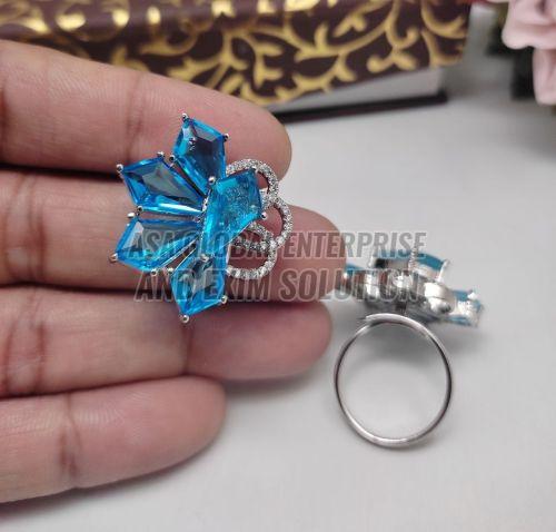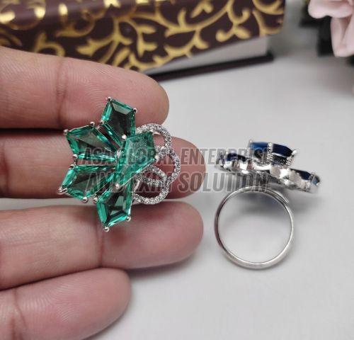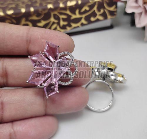 Ladies Brass Flower Crystal Finger Ring